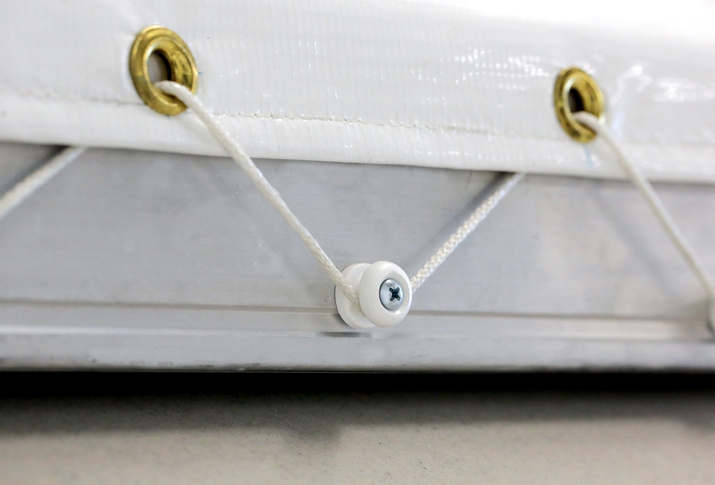The roof is made of a lightweight aluminum framework that slips together and is easy to assemble with just a screwdriver. The 3-layer roof cover consists of a heavy duty vinyl outside, lofty middle insulation layer, and protective lightweight inner membrane. The insulated cover quickly attaches to the frame with button snaps and pre-laced cord that engages hooks on the perimeter of the frame. A 14” RV ceiling vent, included in the kit, is easily installed from the inside once the roof is set up. An LED light ring around the vent provides adequate lighting for the entire shelter.
