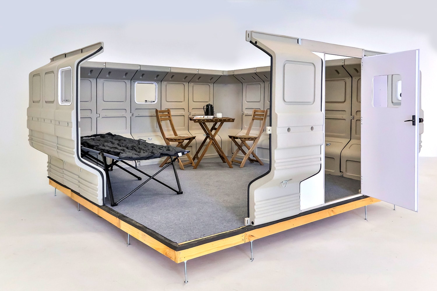 The Love Shacks™ is modular, lightweight, rugged, insulated, and easy to set up. It comes as a complete kit and the only tool required for set up is a screwdriver. The Love Shacks™ components are UV-treated, making for a long-lasting shelter. The shape of the Love Shacks™’s walls creates a surprising amount of usable space without a large footprint. Each modular component is very lightweight, none exceeding 30 lbs, making it easy for anyone to be able to set it up.